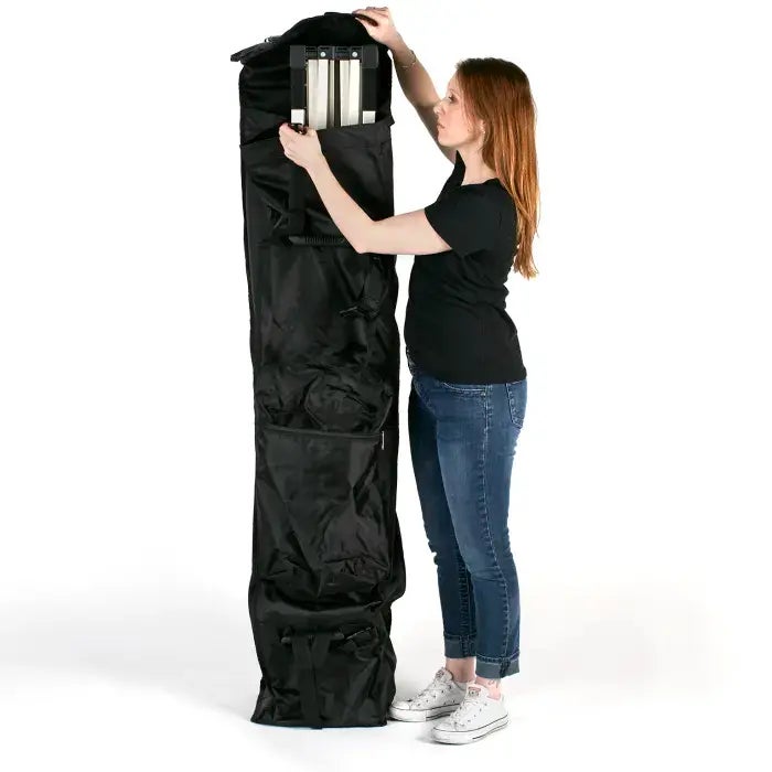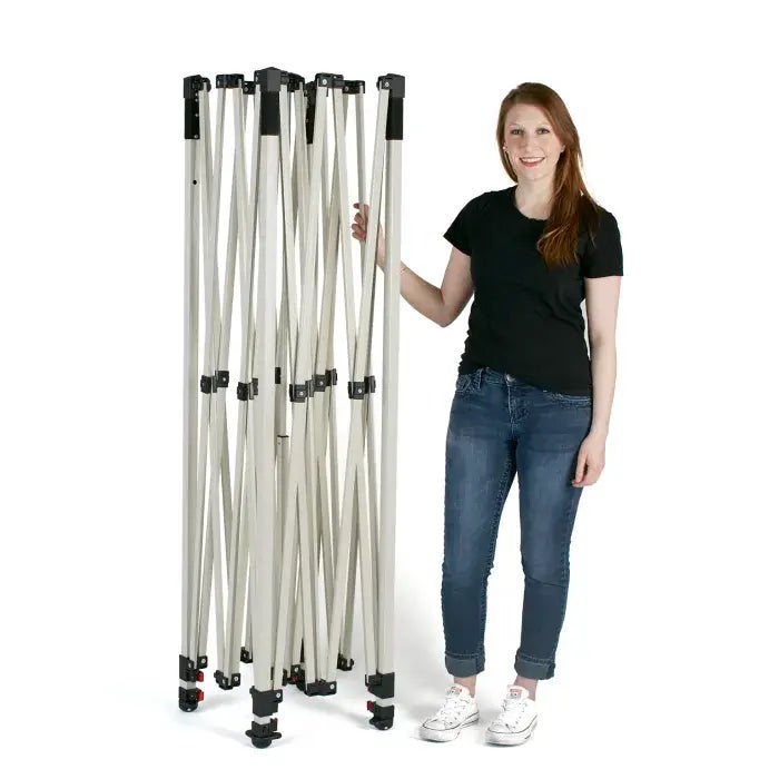 • 10' x 10' Canopy Size• Durable (14.4 oz) Polyester Tent• Collapsible Steel Frame• Carrying case with Wheels• Ground stakes & rope included• Height Adjusts up to 11.5’